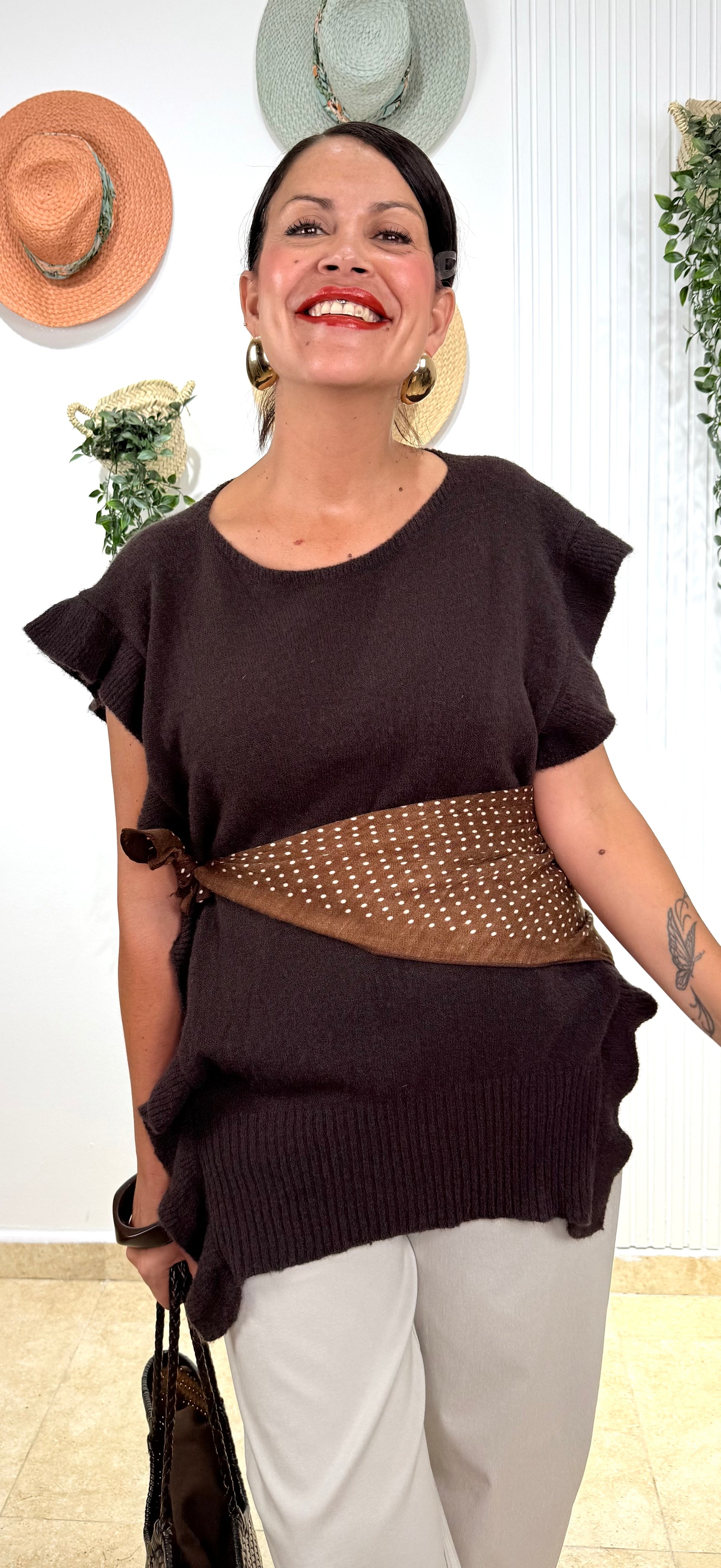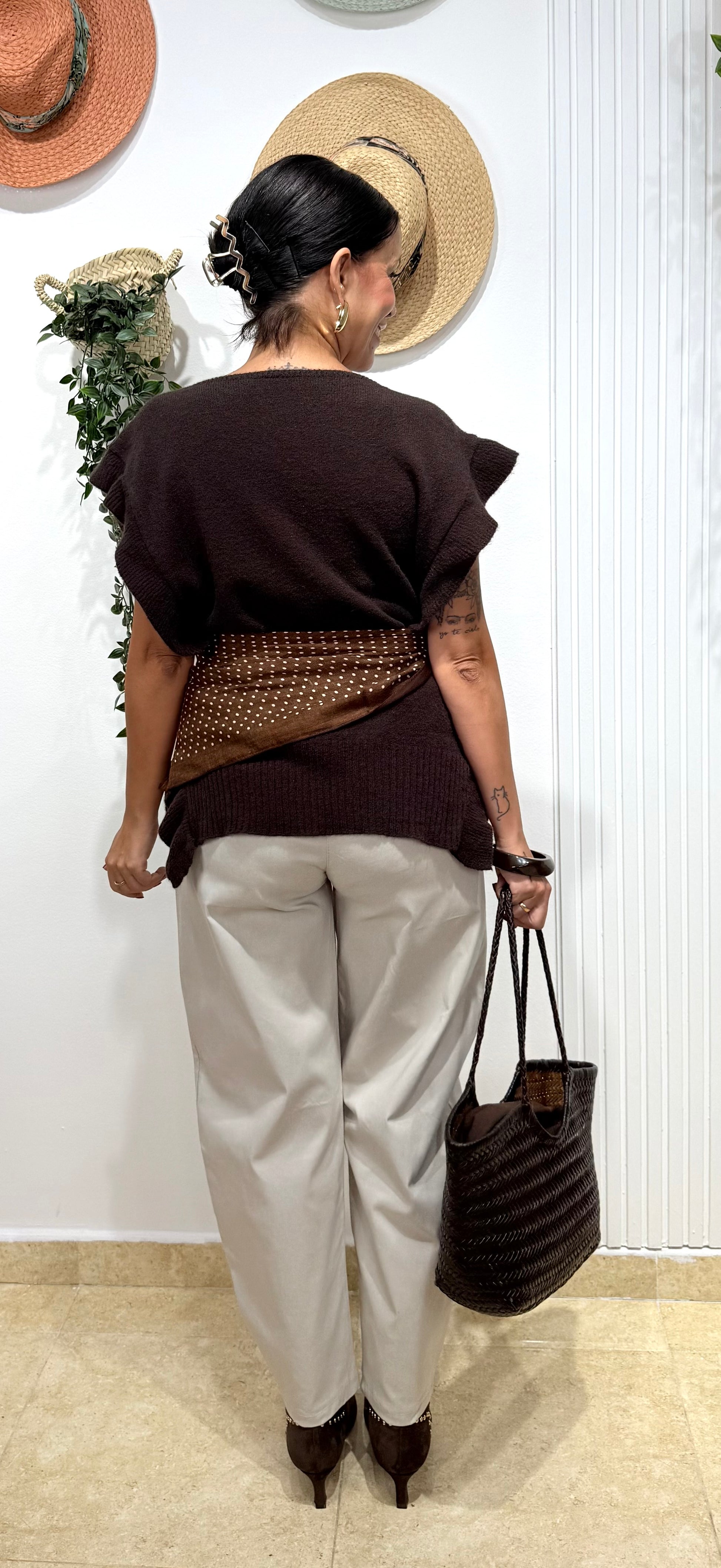 Chaleco volantes chocolate