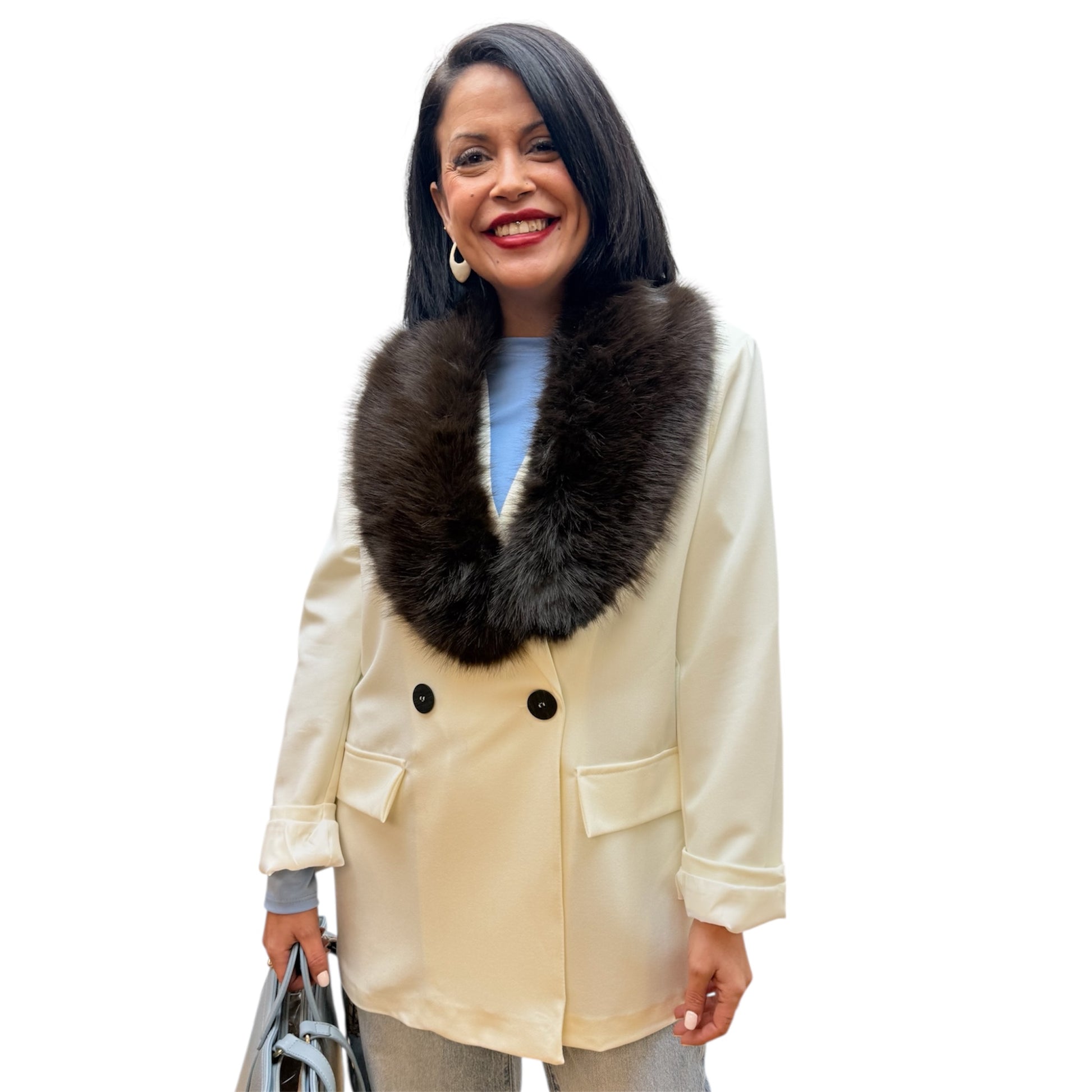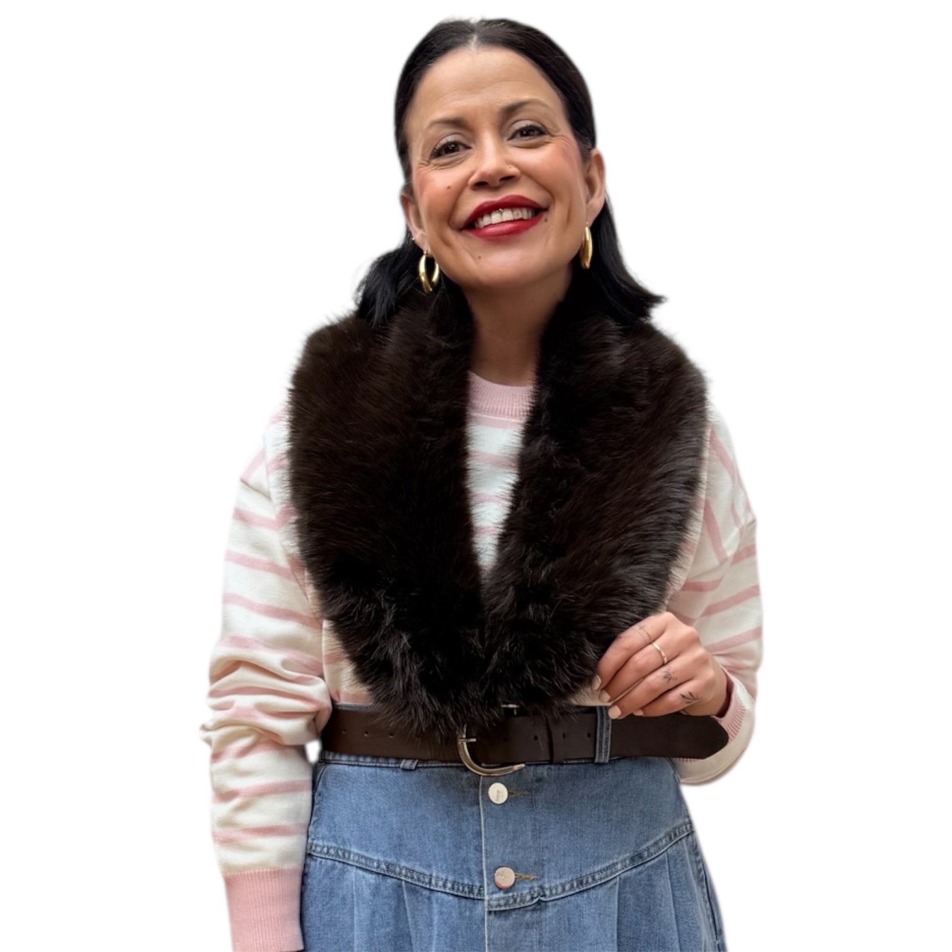 Cuello pelo chocolate, con enganche para abrochar y un color super tendencia