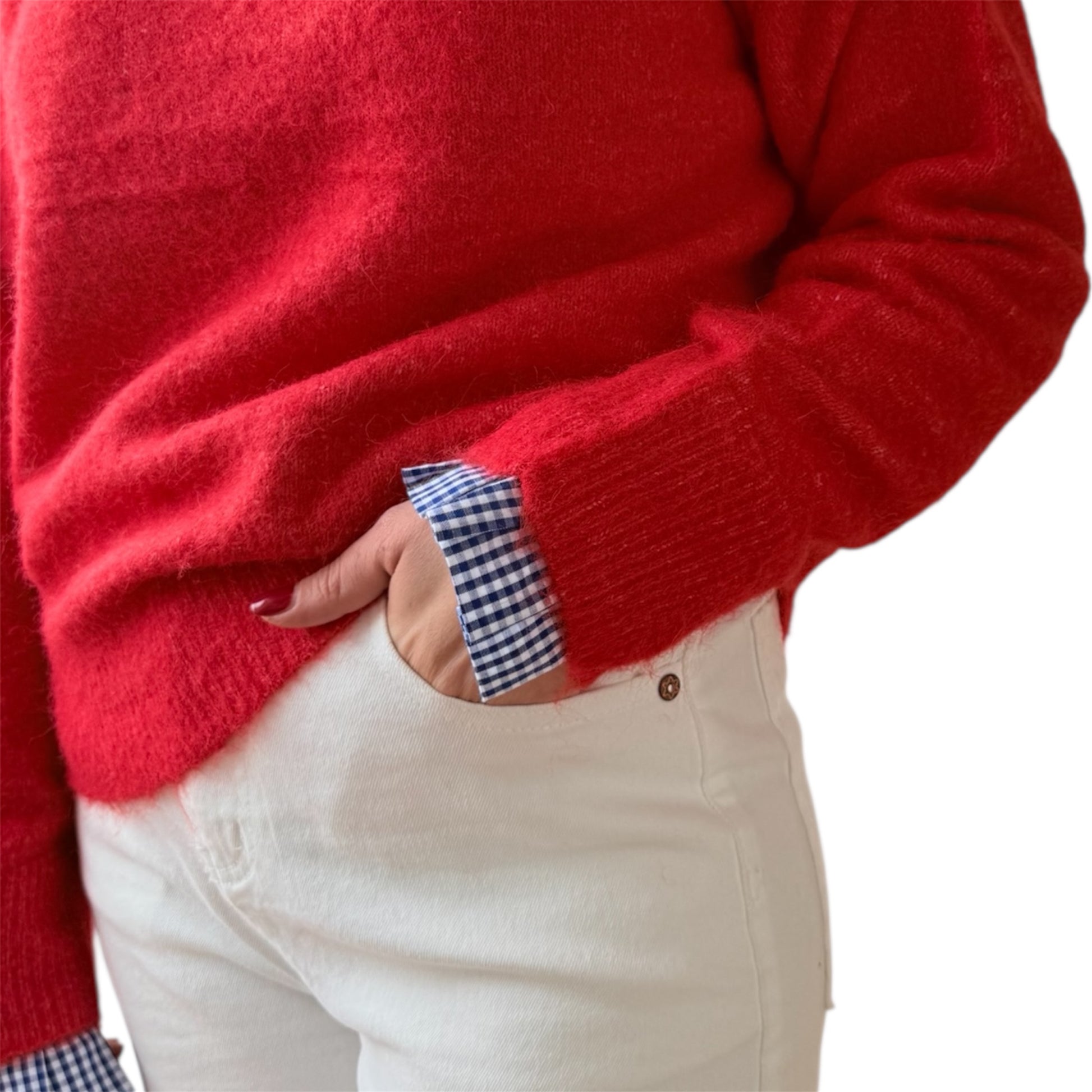 Un jeans de corte recto con tejido grueso, estiliza tu figura ya que es alto de cintura con cinturón incluido de antelina.