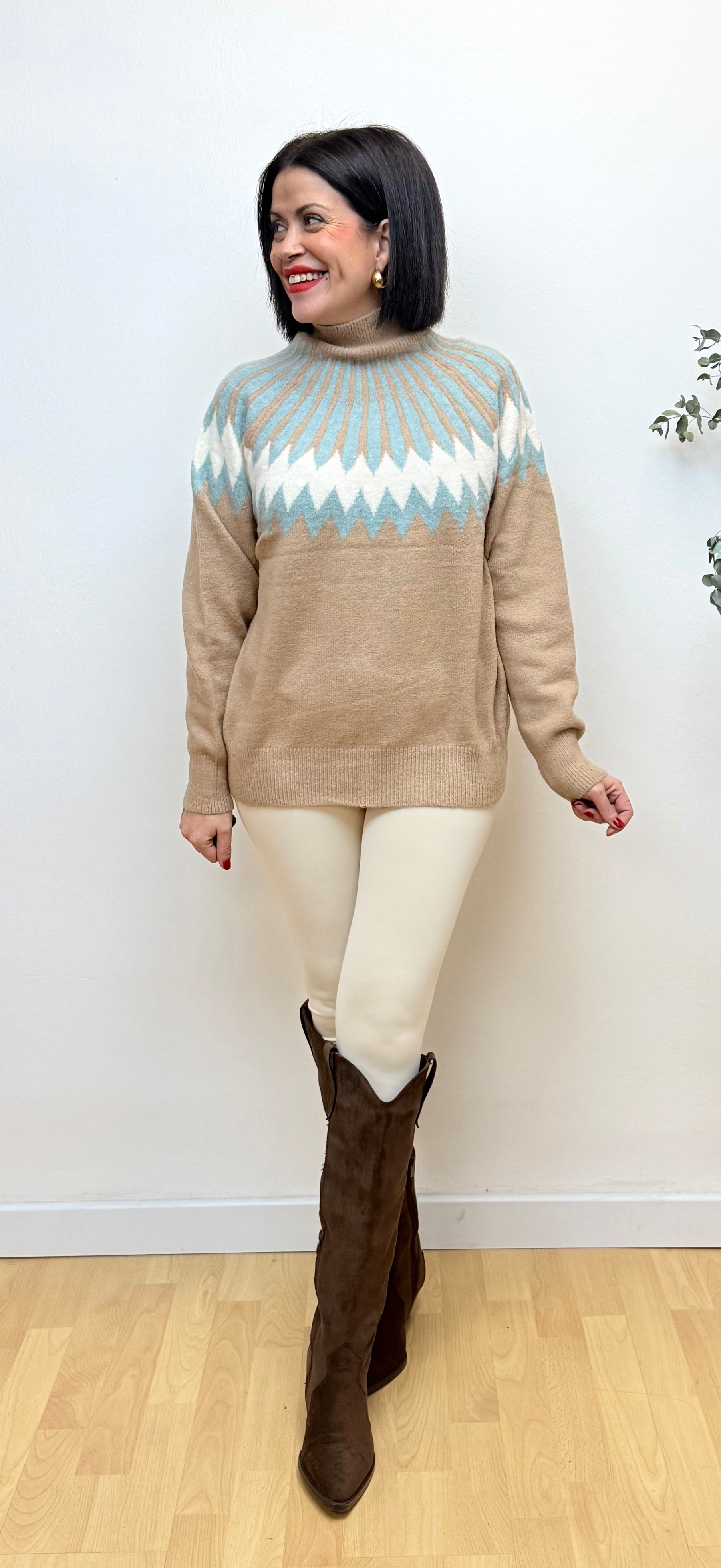 Jersey muy calentito, con un tacto súper suave, un jersey con colores neutrales, fáciles de combinar , combínalo tanto con jeans, leggins, o pantalones de vestir.