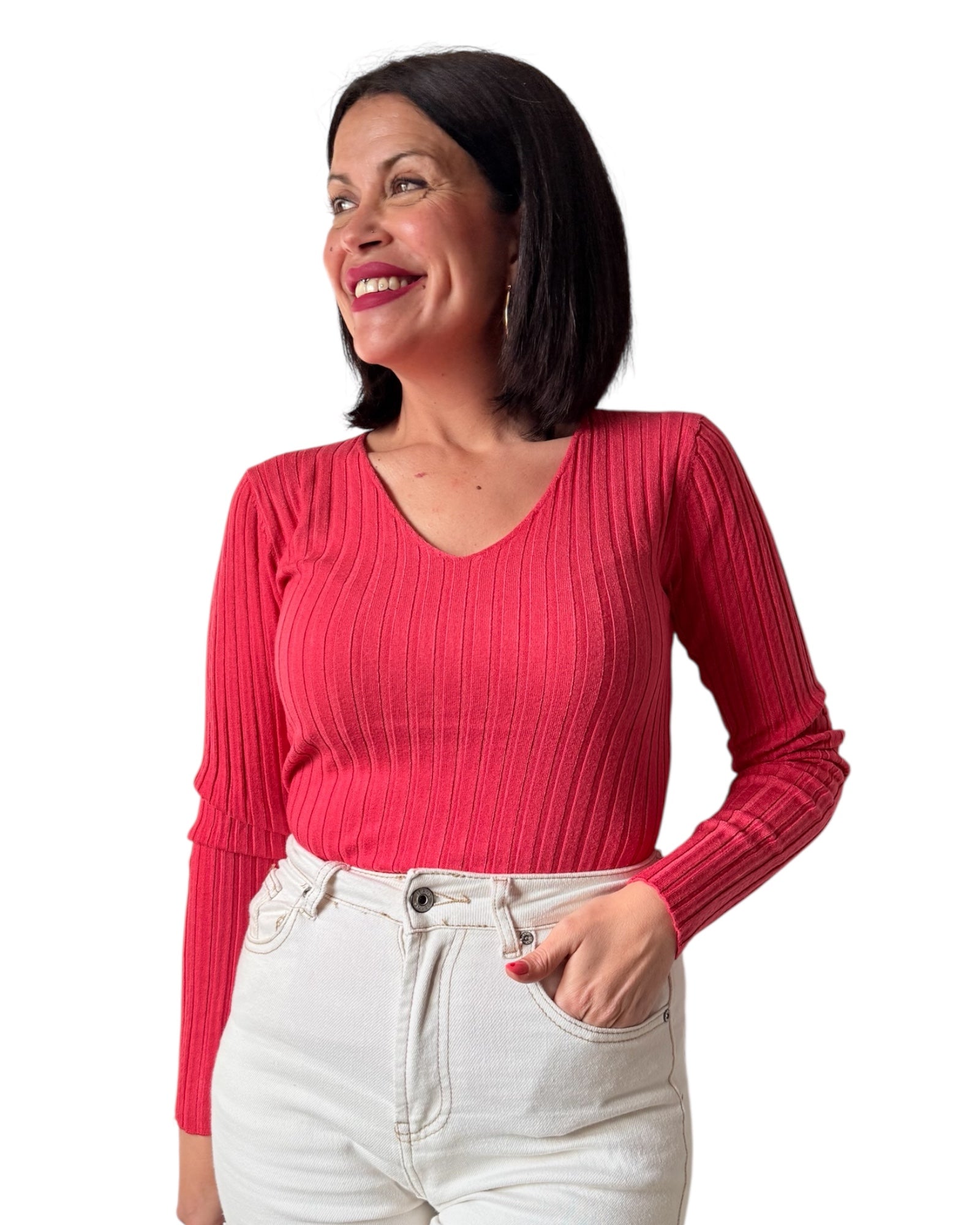 Jersey básico canalé sandía