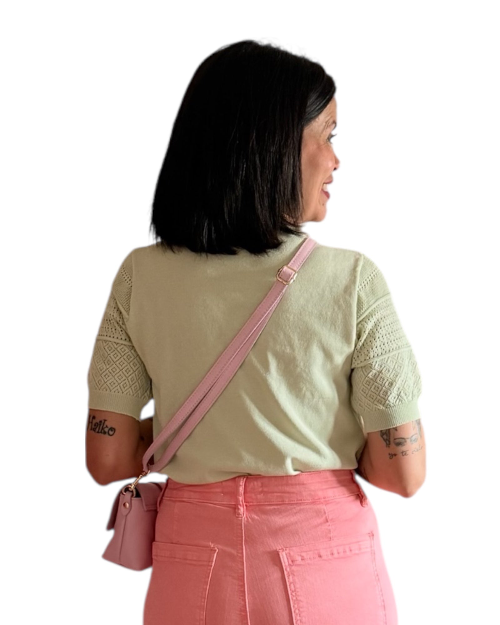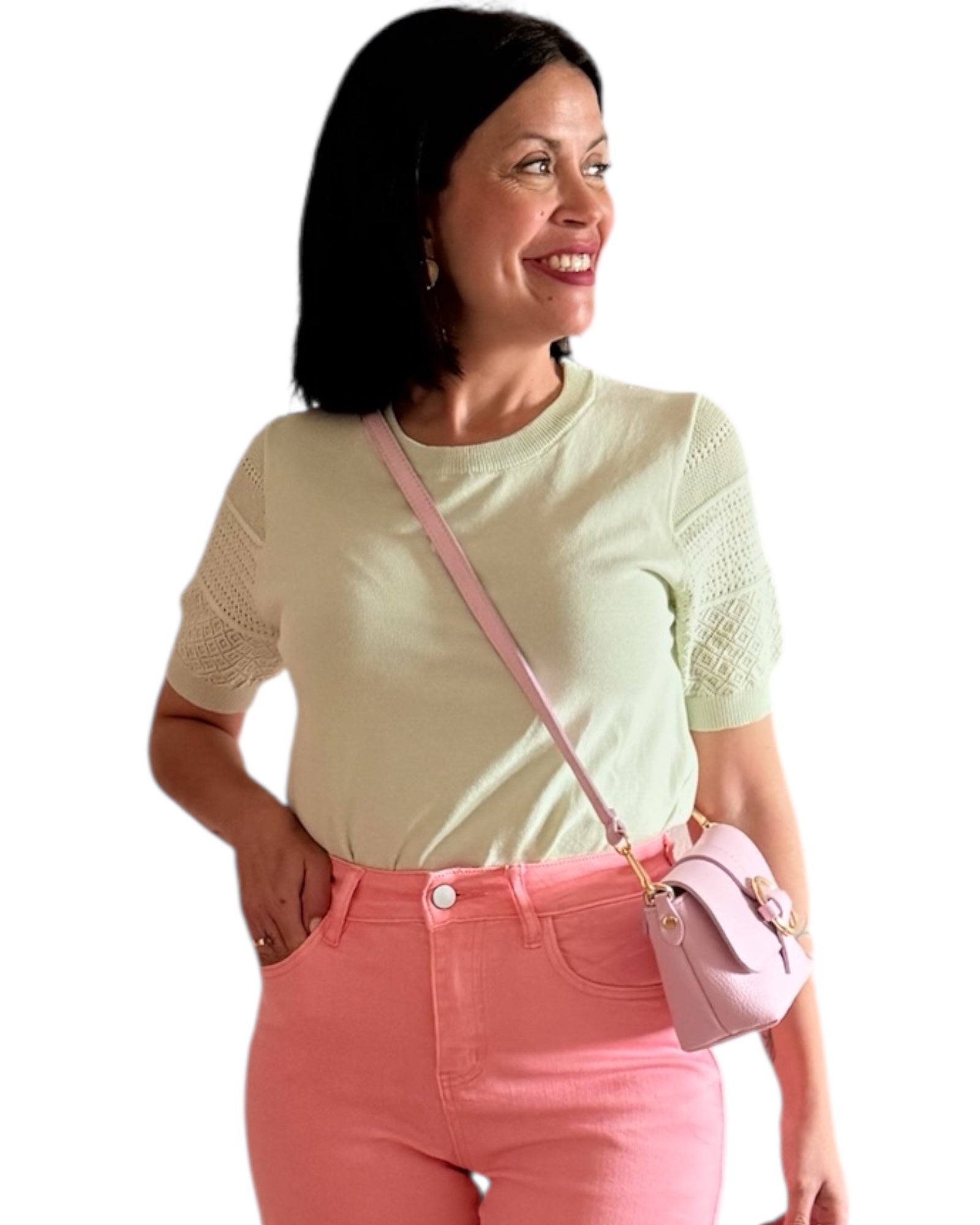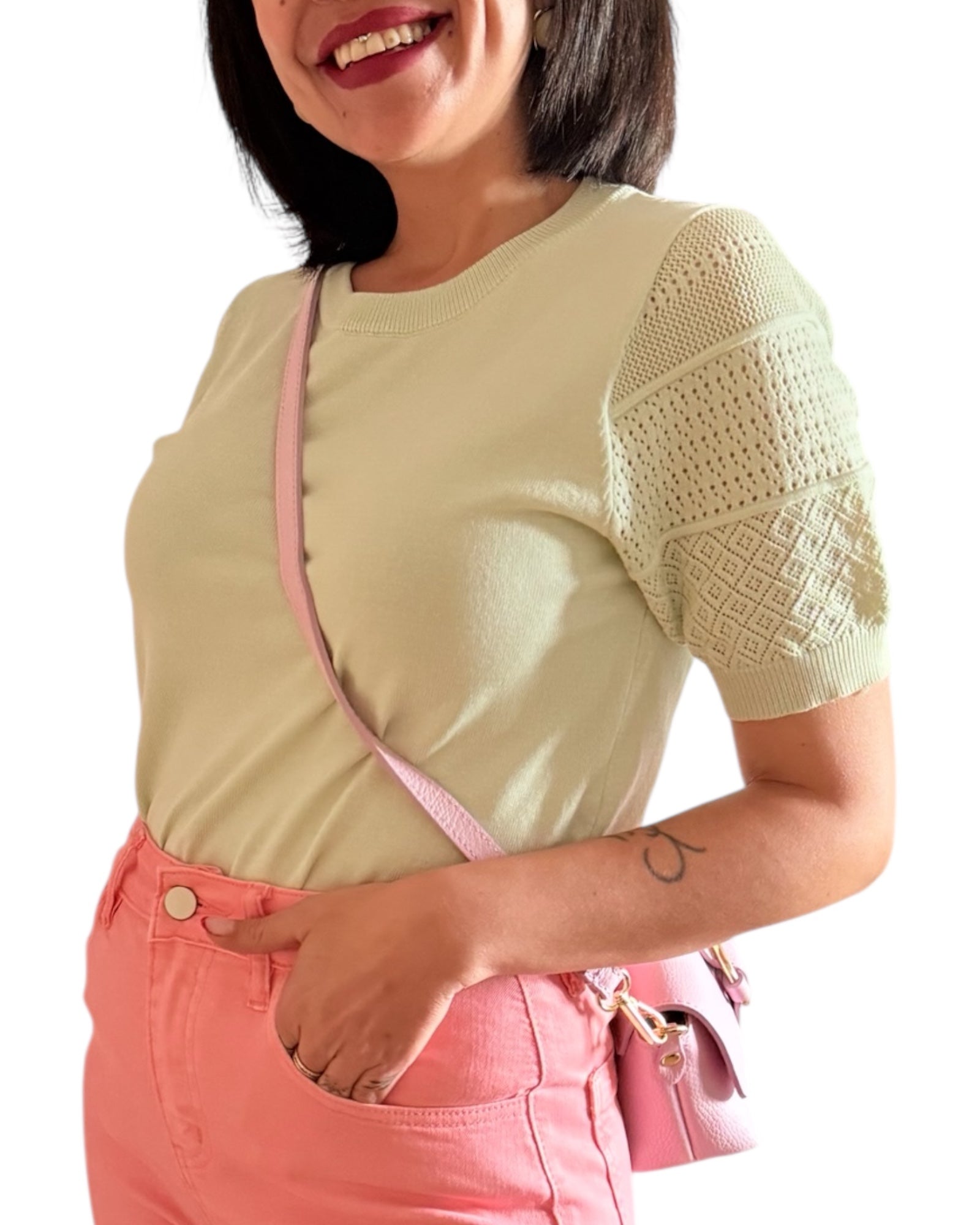 Un jersey fino perfecto para la primavera , con unos detalles calados en la zona de la manga muy bonito, elástico, cómodo.