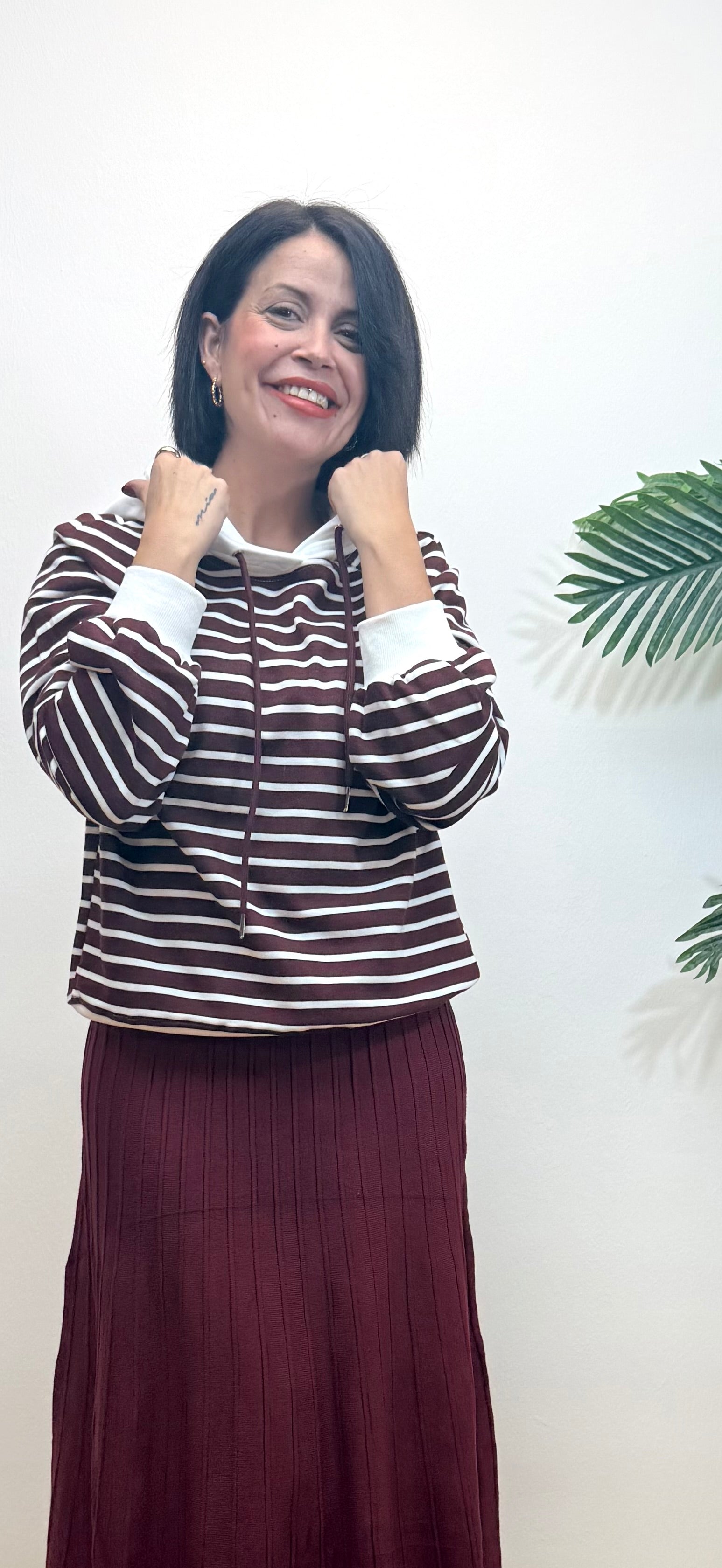 Sudadera Navy burdeos, de la marca ALLO ALLO garantizando la calidad siempre, con cordones y capucha, viene en 2 medidas (SM-ML), nos acompañará en look perfectos y con estilo, sin olvidarnos de la comodidad.