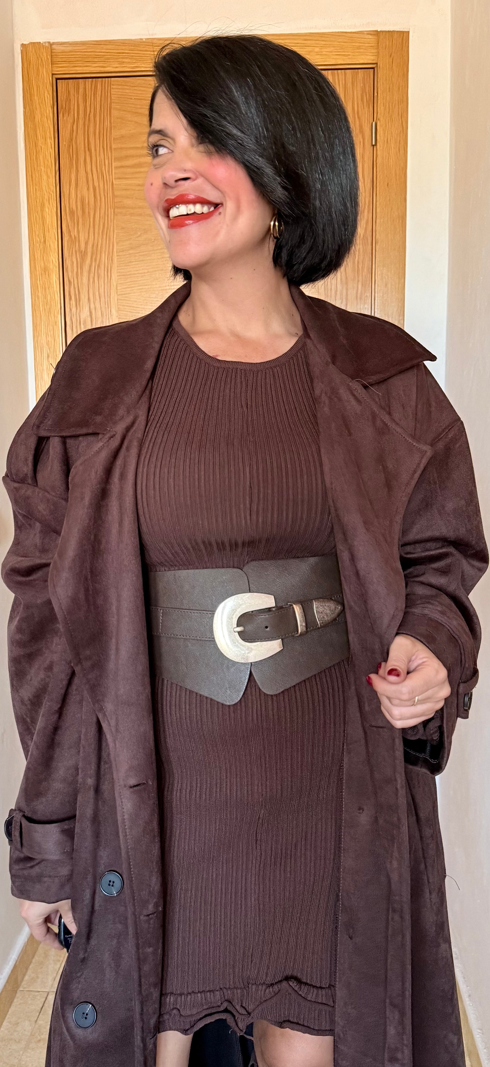 Vestido canalé volantes chocolate